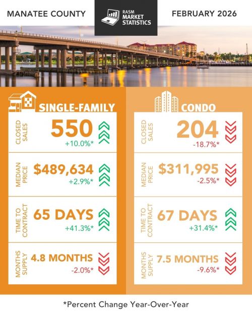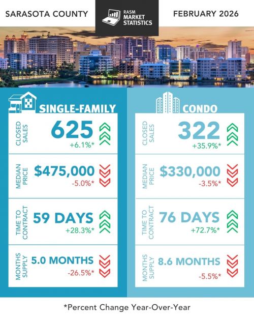 The REALTOR® Association of Sarasota and Manatee (RASM) has released its February 2026 real estate market report, highlighting shifts across property types and counties. February’s data show the two counties moving in slightly different directions. Manatee County’s single-family market continued to grow, while Sarasota’s single-family market cooled. Buyers are gravitating toward condos and townhomes, especially in Sarasota, contributing to a notable surge in sales for that segment.